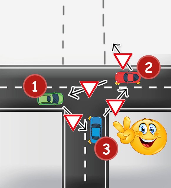 I hvilken rækkefølge passerer bilerne gennem krydset, og hvorfor?