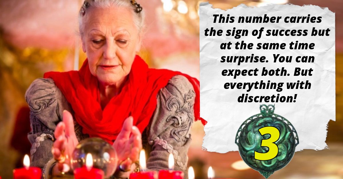 This number carries the sign of success but at the same time surprise. You can expect both. But everything with discretion!