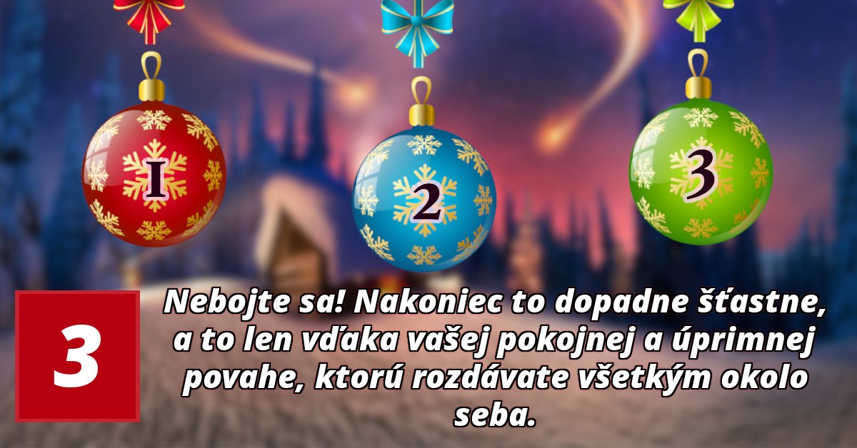 Nebojte sa! Nakoniec to dopadne šťastne, a to len vďaka vašej pokojnej a úprimnej povahe, ktorú rozdávate všetkým okolo seba.