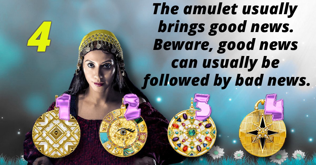 The amulet usually brings good news. Beware, good news can usually be followed by bad news.