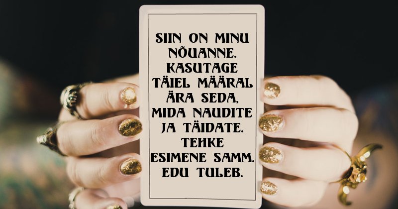 Mul on käes rull sinu tuleviku kohta. Kas sa tahad seda kuulda?