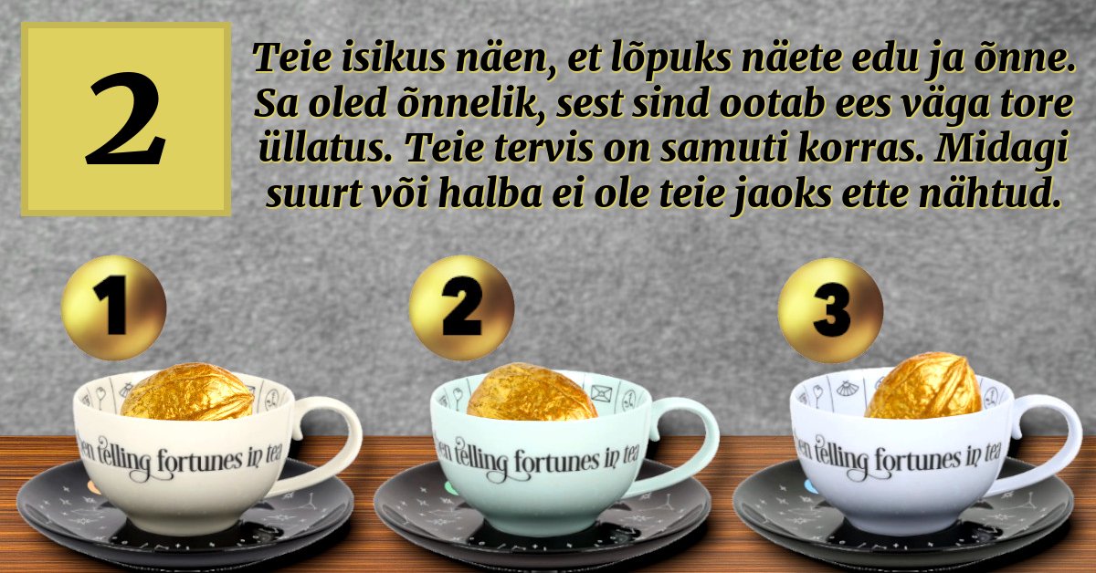 Igas tassis on üks kuldne pähkel ja sa valid hoolikalt ainult ühe neist!