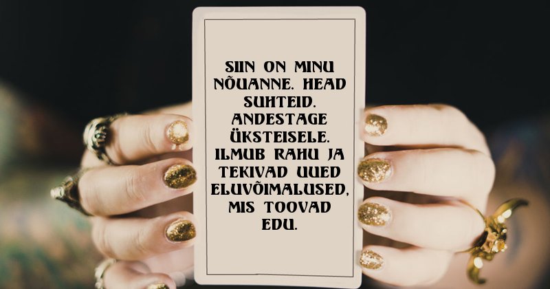 Ennustaja on piilunud teie hinge ja tal on teile midagi olulist öelda.