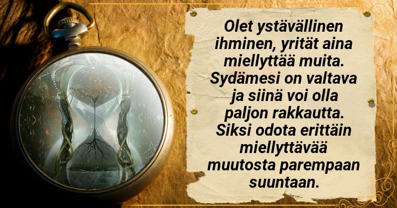 Mitä muuta elämäsi tuo sinulle? Katso kohtalon kelloa.