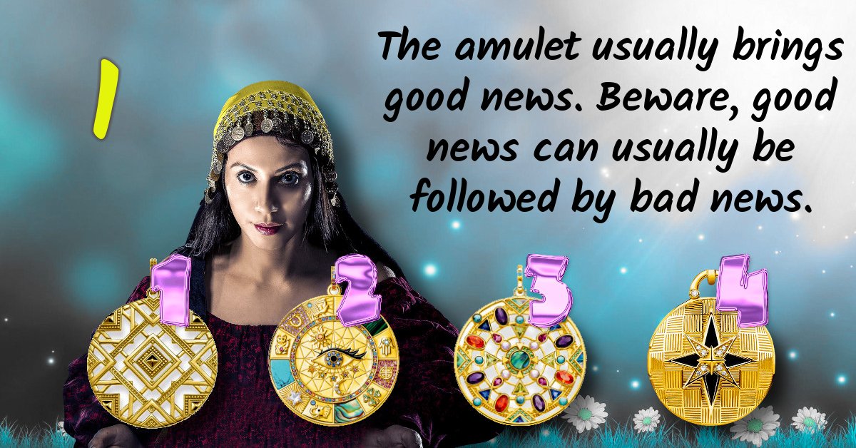 The amulet usually brings good news. Beware, good news can usually be followed by bad news.