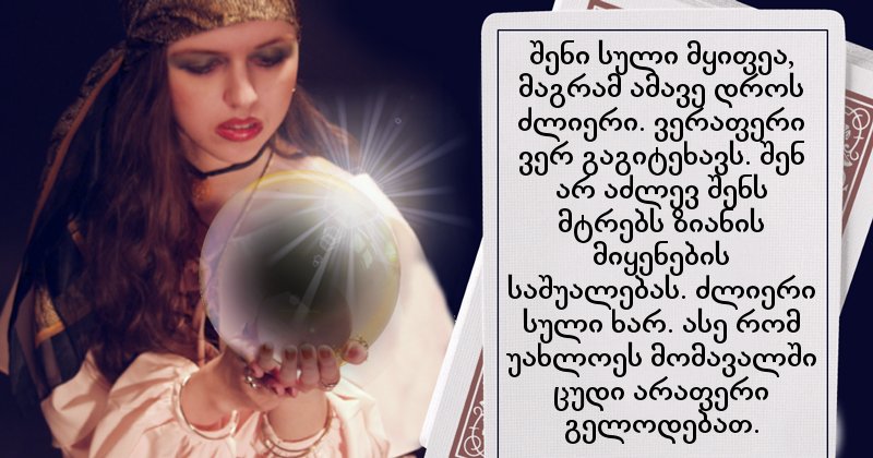 საიდუმლო ბარათი ამ პაკეტმა აჩვენა, რა გელით მომდევნო ორი დღის განმავლობაში.