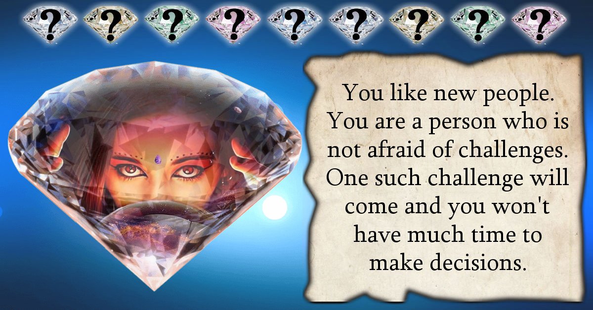 You like new people. You are a person who is not afraid of challenges. One such challenge will come and you won't have much time to make decisions.