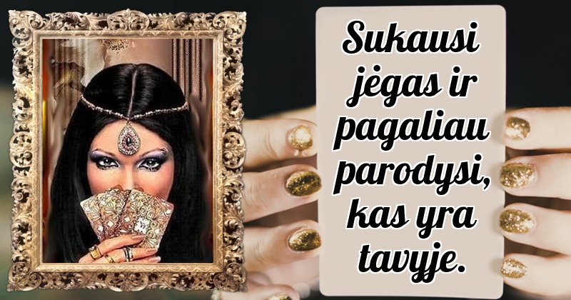 Burtininkas jums išdalijo keturias kortas. Ar norite sužinoti atsakymą?
