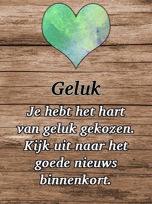Heb een kaart klaarliggen voor volgende maand. Deze kaart zal je vertellen hoe je lot verder zal gaan!