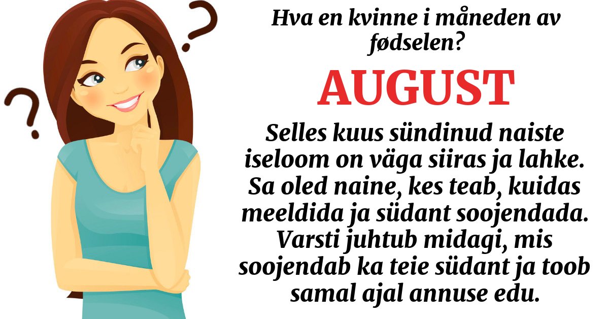 Selles kuus sündinud naiste iseloom on väga siiras ja lahke. Sa oled naine, kes teab, kuidas meeldida ja südant soojendada. Varsti juhtub midagi, mis soojendab ka teie südant ja toob samal ajal annuse edu.