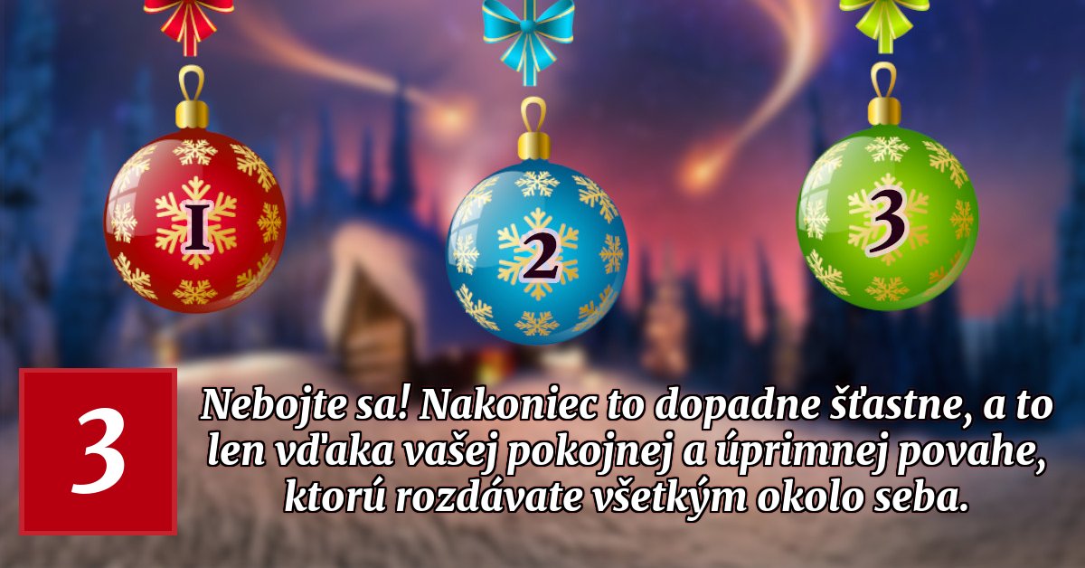 Nebojte sa! Nakoniec to dopadne šťastne, a to len vďaka vašej pokojnej a úprimnej povahe, ktorú rozdávate všetkým okolo seba.