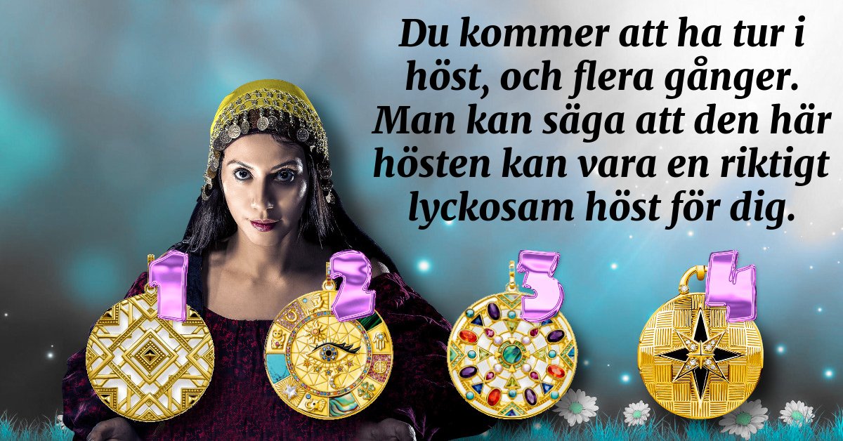 Jag har fyra amuletter till dig. Vilken av dem döljer din tur?