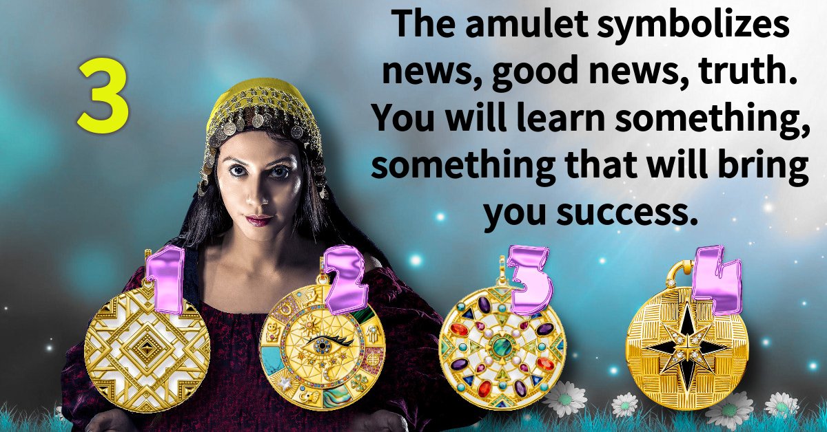 The amulet symbolizes news, good news, truth. You will learn something, something that will bring you success.